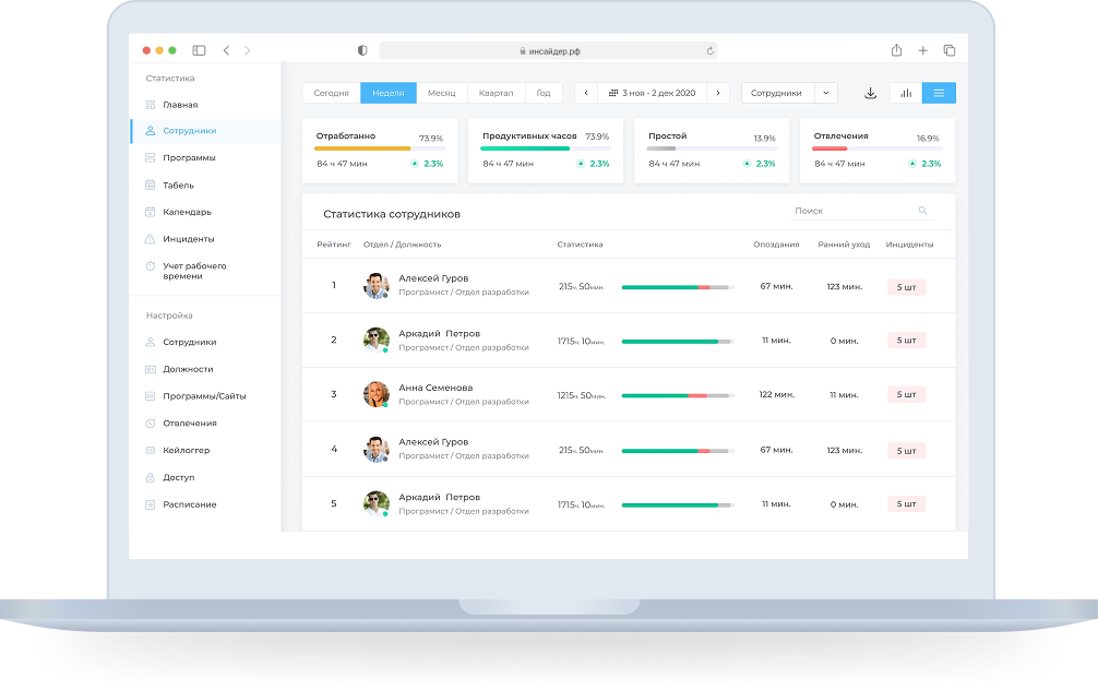 ИНСАЙДЕР - система мониторинга и оценки эффективности работы сотрудников за ПК и смартфонами